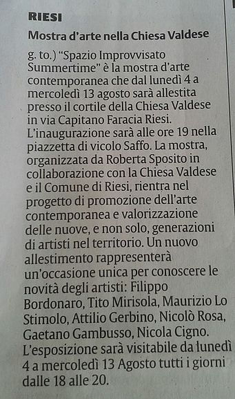 Mostra d'arte nella Chiesa ValdeseLa Sicilia3 ago 2014Tempo di lettura: 1 min #artecontemporanea #spazioimprovvisatosummertime #mostra #collettiva #cortile #riesi